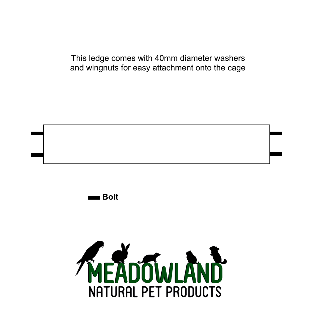 Attachments are included for securely fixing to your wire cage. This bridge comes complete with 2 bolts on each end. The washers that come with these ledges are 4cm outer diameter. We provide large washers for two reasons: Cages come with various sizes of bar spacing, our large washers cater for the large majority. Also, the larger the washer, the more support the ledge will have and the less strain that is put on your wire cage bars.