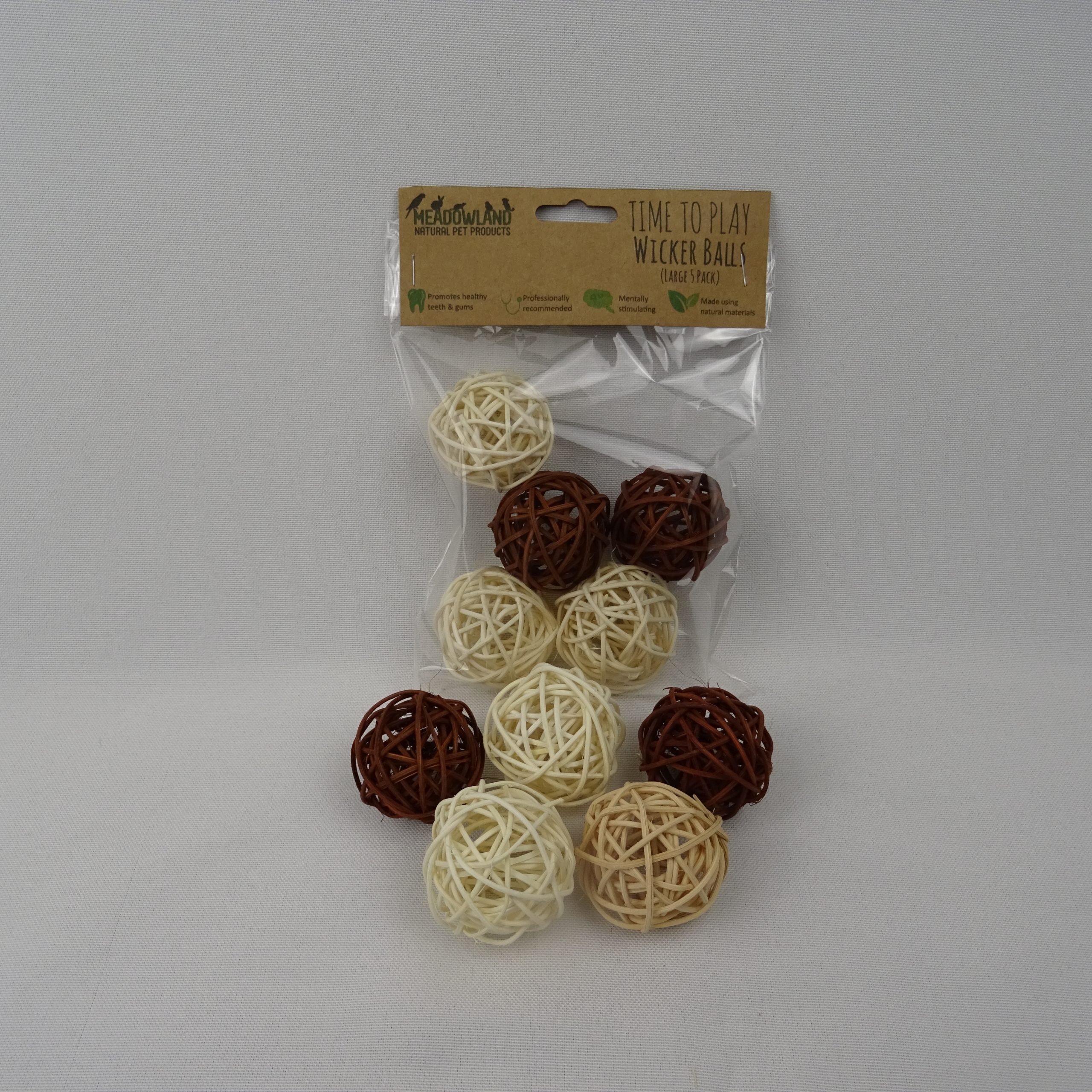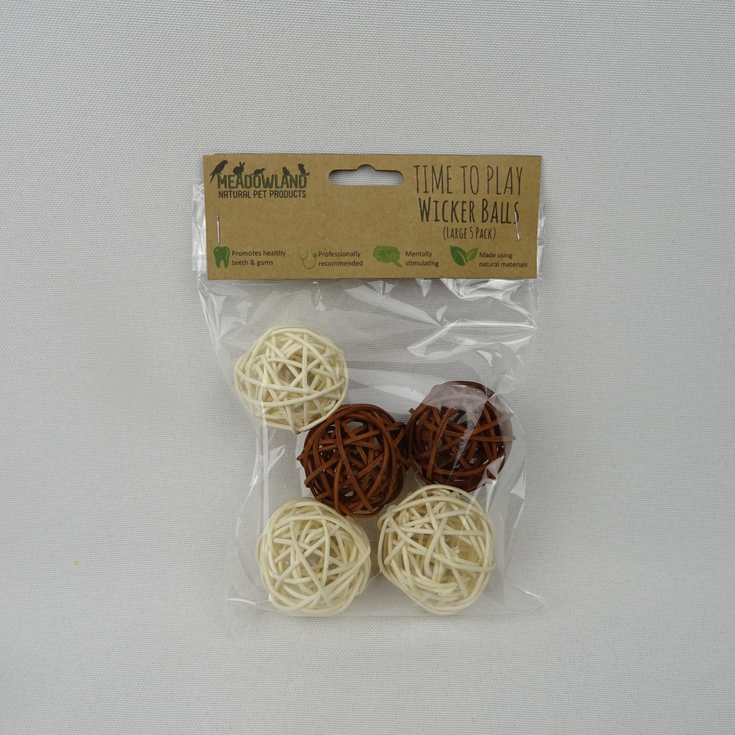 Each pack contains 5 large wicker balls and you will receive a selection of different colours, varying from white, brown and mid-brown.