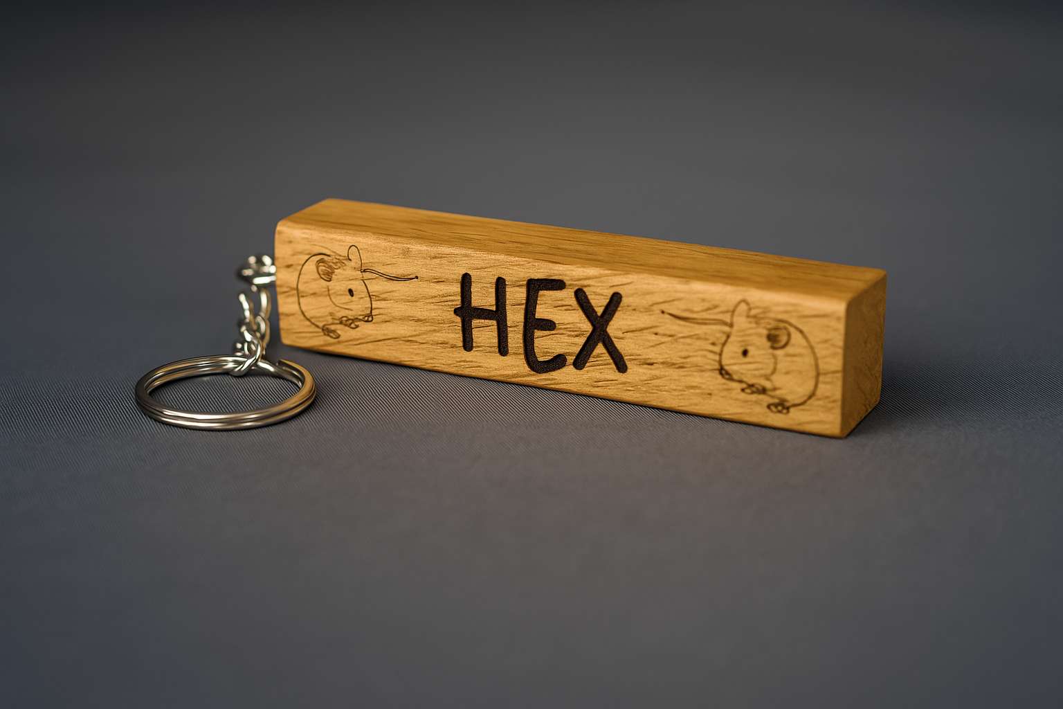 Each personalised Oak keyring comes with a metal keyring chain for easy and secure attachment onto a set of keys. There is enough room on this style for a name or a short saying on each of the larger sides. There is no set design for these keyrings, just so long as the details fit!