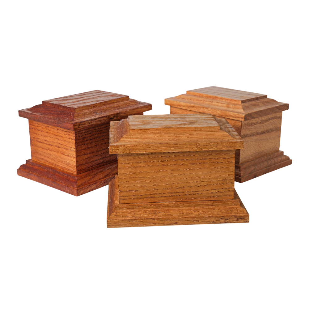 Each pet urn is made by hand using only the very finest white American Oak. Oak is a slow growing hard wood which not only presents itself as being an extremely solid and long lasting material, but the natural grains remain visibly astonishing even when coated in a coloured dye or clear lacquered.